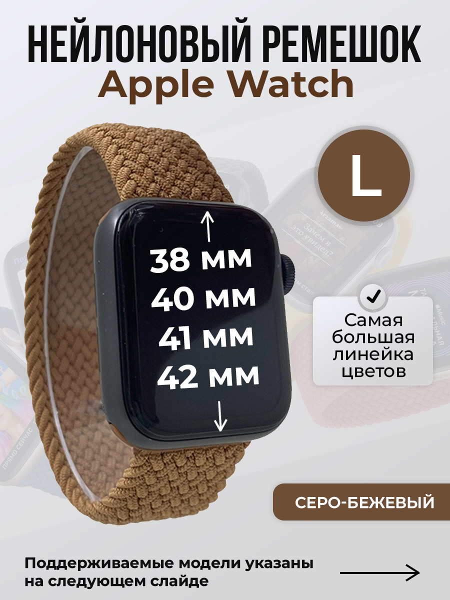 Нейлоновый ремешок для Apple Watch 1-9/SE/SE2/SE3 (38/40/41 мм), 10/11/S10/S11, 42 мм, без застежки, серо-бежевый, размер L