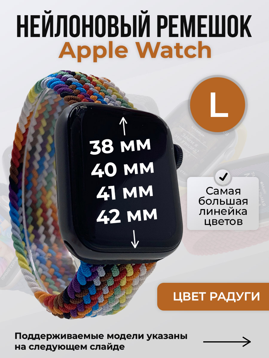 Нейлоновый ремешок для Apple Watch, без застежки, размер L подходит для смарт-часов Apple Watch series 1/2/3/4/5/6/7/8/9/SE/SE2/SE3 с размерами циферблата: 38/40/41 мм, а также для Apple Watch series 10/11, S10/S11 с размером циферблата 42 мм. Ремешок для часов iPhone выполнен из гипоаллергенного нейлона. Цвет крепления может отличатся от карточки товара.