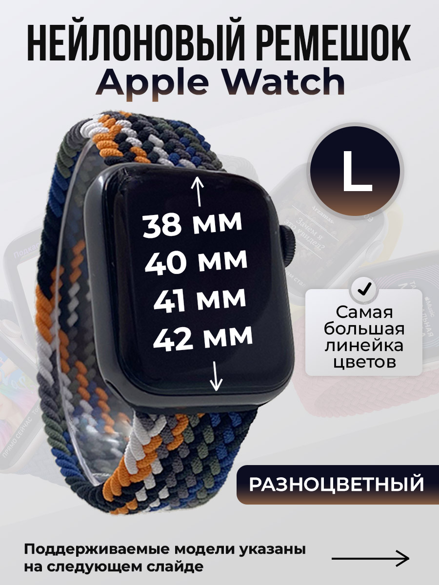 Нейлоновый ремешок для Apple Watch 1-9/SE/SE2/SE3 (38/40/41 мм), 10/11/S10/S11, 42 мм, без застежки, разноцветный, размер L | Супер цены