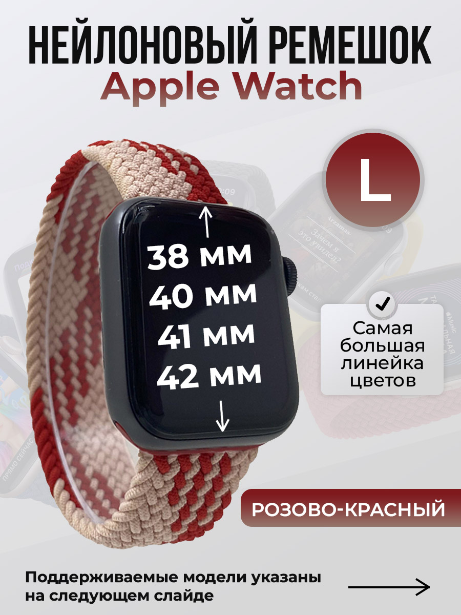 Нейлоновый ремешок для Apple Watch, без застежки, размер L подходит для смарт-часов Apple Watch series 1/2/3/4/5/6/7/8/9/SE/SE2/SE3 с размерами циферблата: 38/40/41 мм, а также для Apple Watch series 10/11, S10/S11 с размером циферблата 42 мм. Ремешок для часов iPhone выполнен из гипоаллергенного нейлона. Цвет крепления может отличатся от карточки товара.
