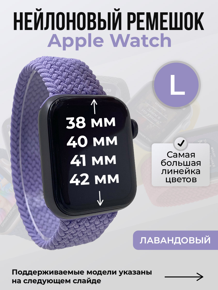 Нейлоновый ремешок для Apple Watch 1-9/SE/SE2/SE3 (38/40/41 мм), 10/11/S10/S11, 42 мм, без застежки, лавандовый, размер L