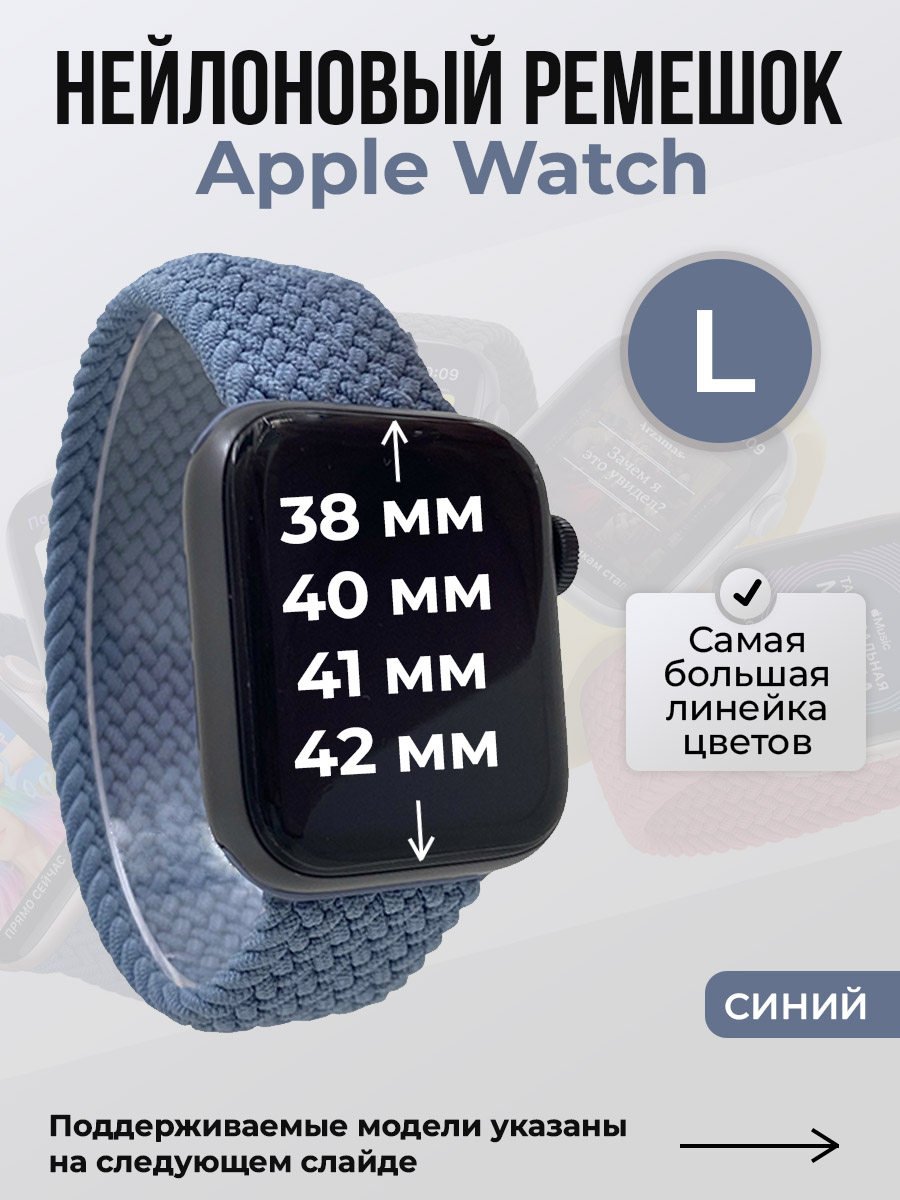 Нейлоновый ремешок для Apple Watch 1-9/SE/SE2/SE3 (38/40/41 мм), 10/11/S10/S11, 42 мм, без застежки, синий, размер L | Супер цены