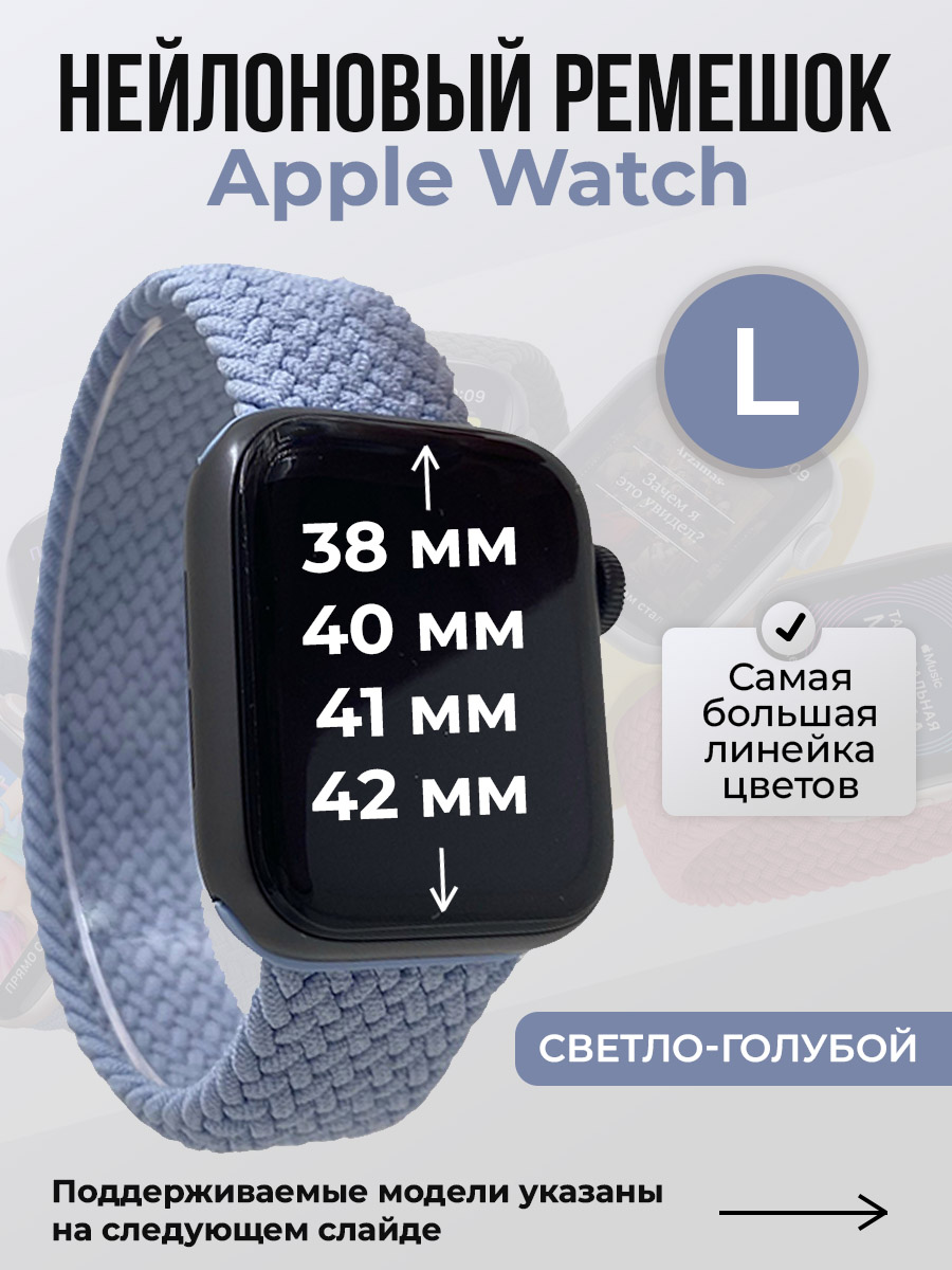 Нейлоновый ремешок для Apple Watch, без застежки, размер L подходит для смарт-часов Apple Watch series 1/2/3/4/5/6/7/8/9/SE/SE2/SE3 с размерами циферблата: 38/40/41 мм, а также для Apple Watch series 10/11, S10/S11 с размером циферблата 42 мм. Ремешок для часов iPhone выполнен из гипоаллергенного нейлона. Цвет крепления может отличатся от карточки товара.