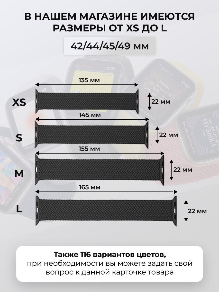 Ремешок для apple watch 45 m сочетает в себе стиль и функциональность. Женский ремешок для Апл Вотч представлен в однотонных оттенках и в разноцветных цветах, что позволит выбрать вариант, который идеально дополнит ваш наряд. Плетеный ремешок для Apple Watch подходит для ежедневного использования, занятия спортом, фитнесом и sport active или повседневной носки