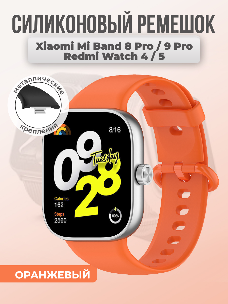Cиликоновый ремешок для Xiaomi Mi Band 8 Pro/9 Pro и Redmi Watch 4/5, оранжевый
