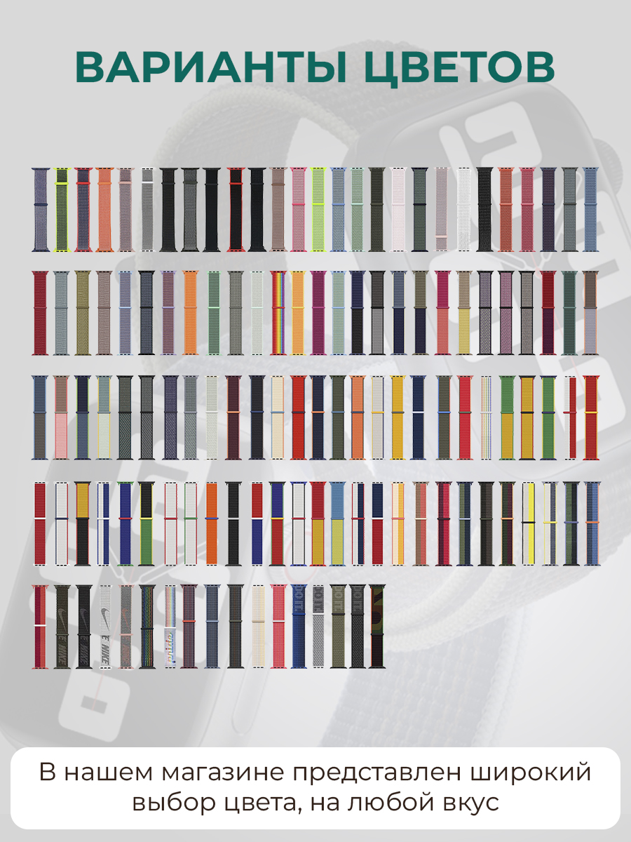 Ремешок для apple watch 42 нейлоновый сочетает в себе стиль и функциональность. Женский ремешок для Апл Вотч представлен в однотонных оттенках и в разноцветных цветах, что позволит выбрать вариант, который идеально дополнит ваш наряд. Тканевый ремешок для Apple Watch подходит для ежедневного использования, занятия спортом, фитнесом и sport active или повседневной носки