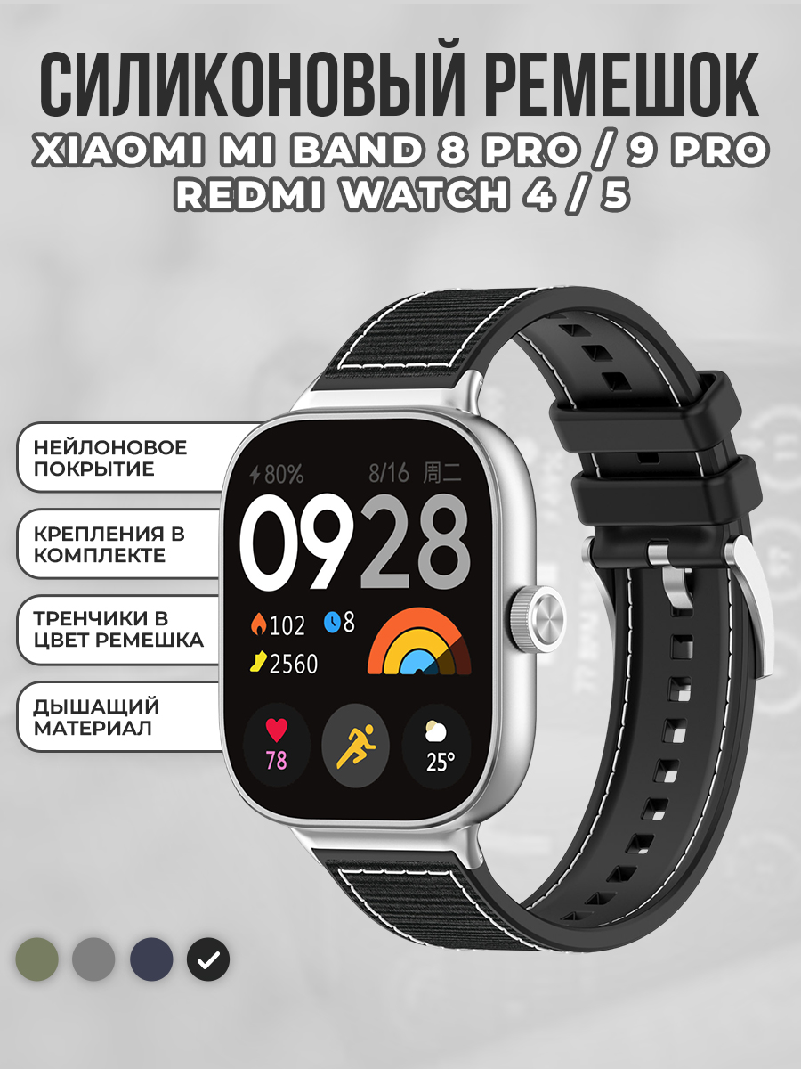 Cиликоново-нейлоновый ремешок для Xiaomi Mi Band 8 Pro/9 Pro и Redmi Watch 4/5, черный