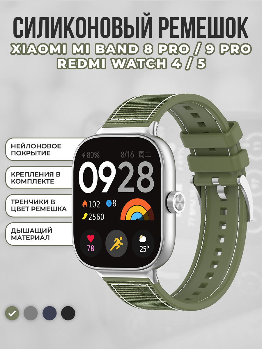 Cиликоново-нейлоновый ремешок для Xiaomi Mi Band 8 Pro/9 Pro и Redmi Watch 4/5, зеленый