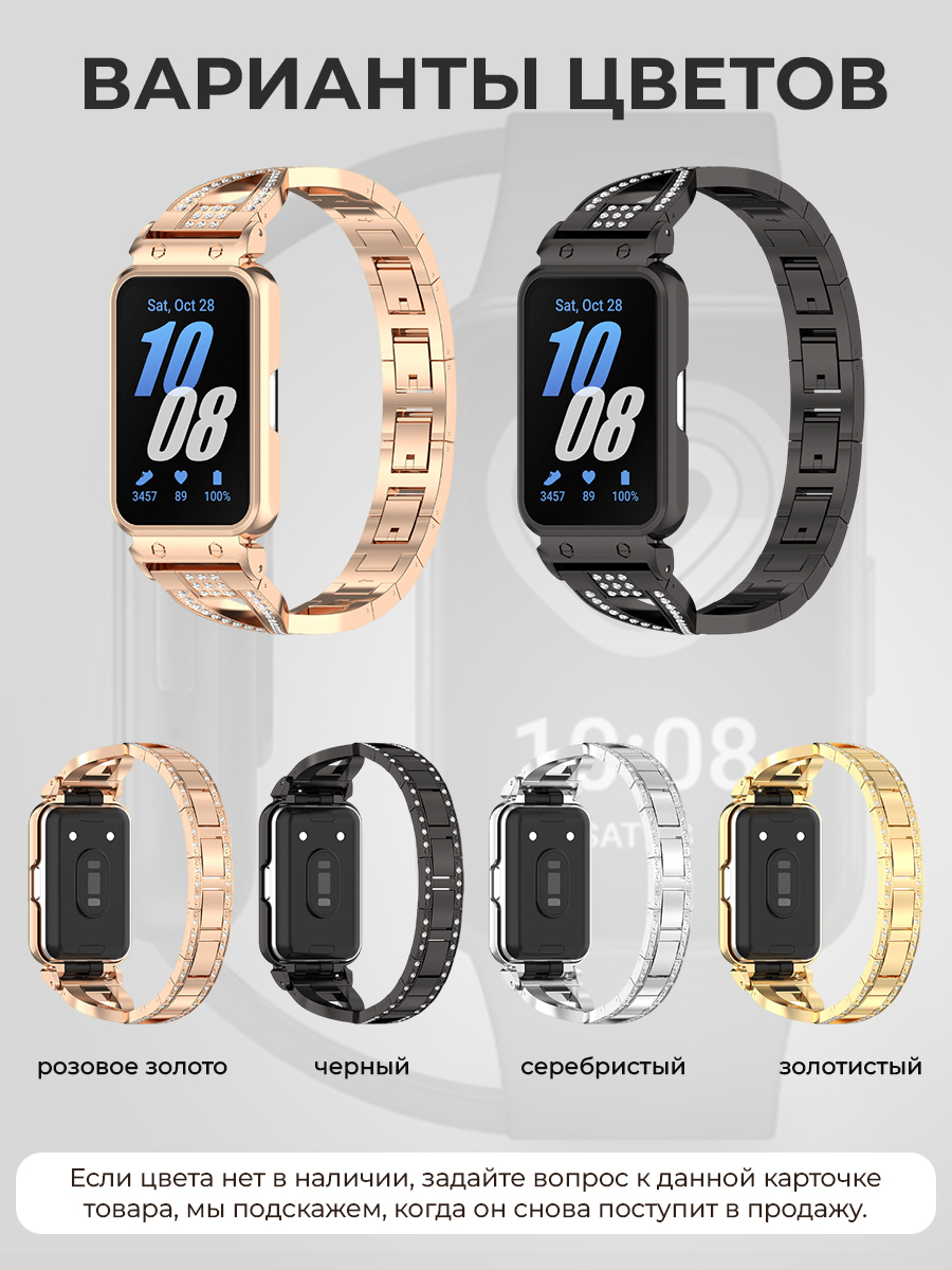 Металлический ремешок с бампером для Samsung Galaxy Fit 3, со стразами — это стильное и функциональное решение для защиты ваших смарт-часов. Чехол на часы Samsung Galaxy Fit 3 выполнен из гипоаллергенного металла, что делает его безопасным для чувствительной кожи и позволяет носить его в течение всего дня, не опасаясь аллергических реакций. Этот чехол-браслет на Samsung Galaxy Fit 3 сочетает в себе элегантность и практичность.