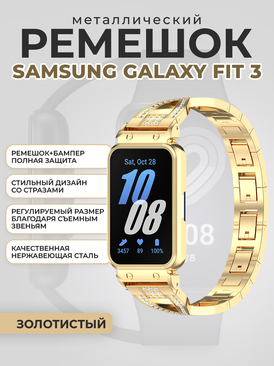 Металлический ремешок с бампером для Samsung Galaxy Fit 3, со стразами, золотистый