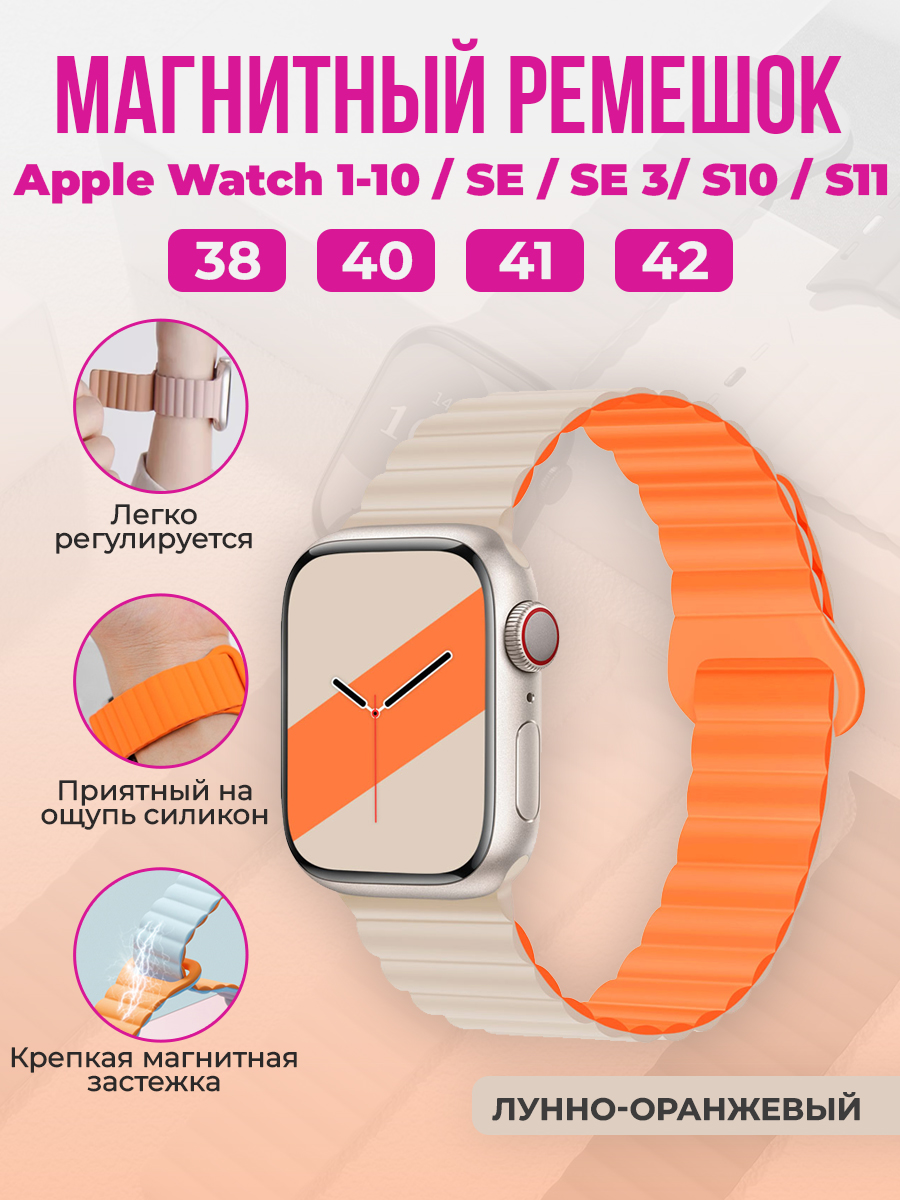 Магнитный силиконовый ремешок для Apple Watch 1-9 / SE / SE 3 (38/40/41 мм), 11, S10/S11, 42 мм, лунно-оранжевый