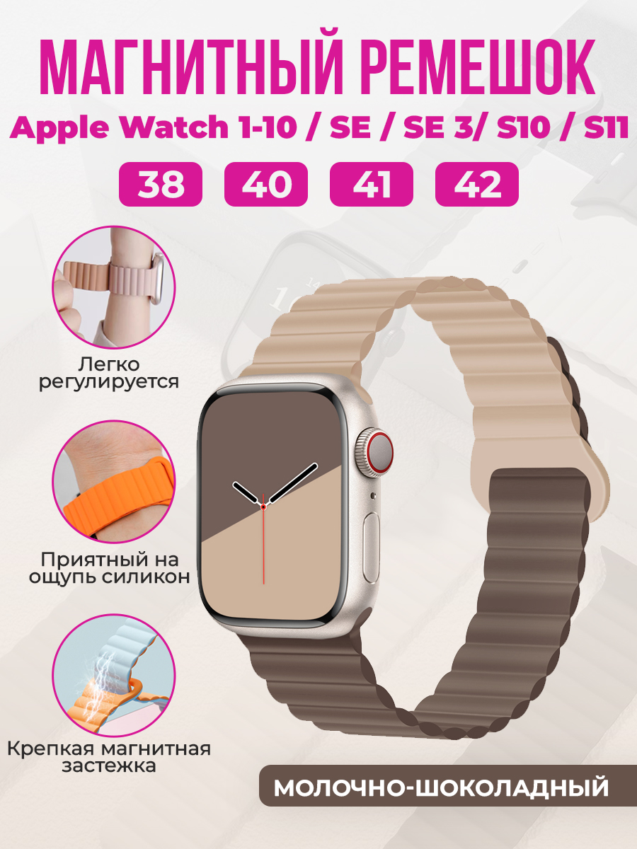 Магнитный силиконовый ремешок для Apple Watch 1-9 / SE / SE 3 (38/40/41 мм), 11, S10/S11, 42 мм, молочно-шоколадный