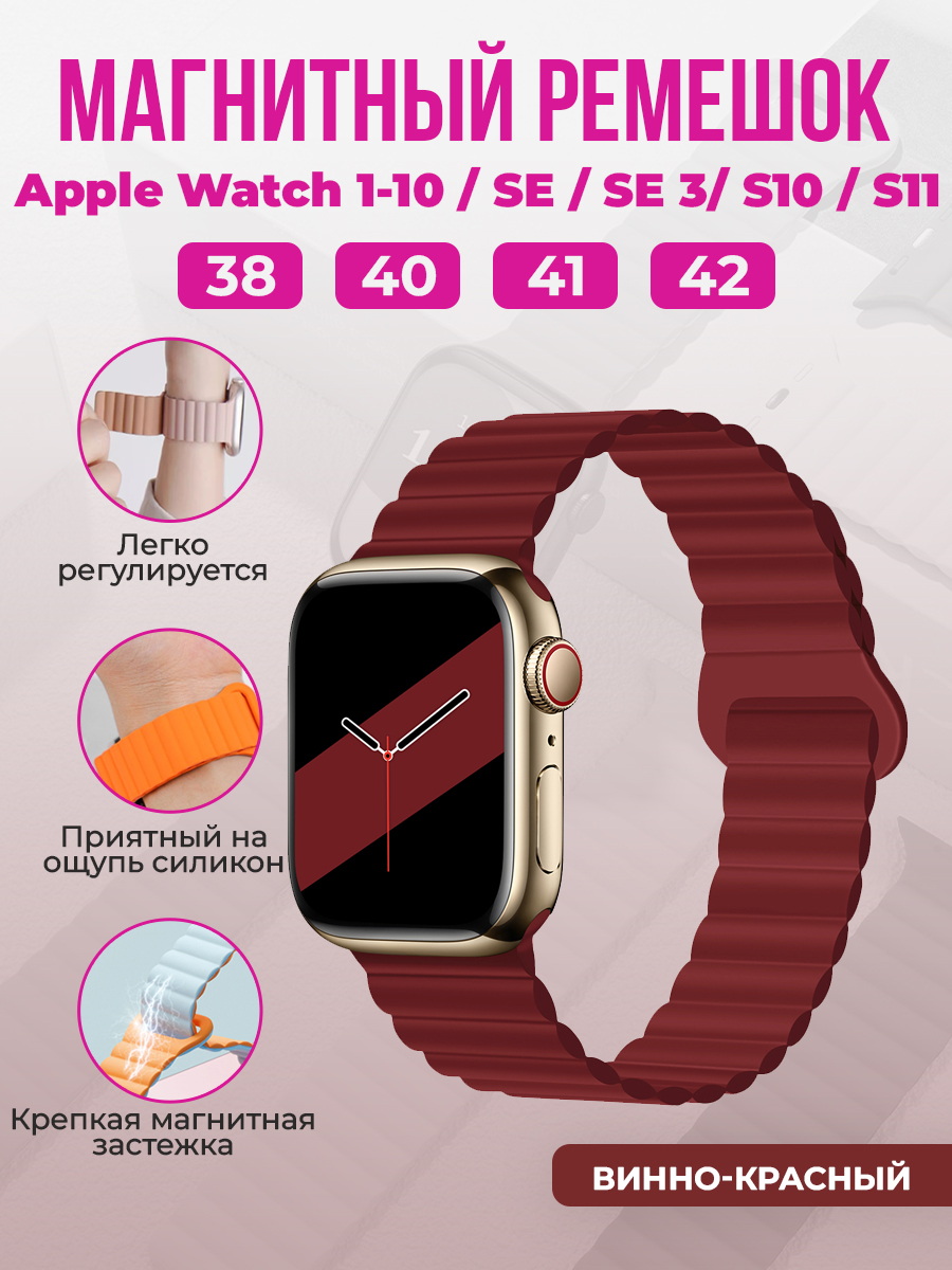 Магнитный силиконовый ремешок для Apple Watch 1-9 / SE / SE 3 (38/40/41 мм), 11, S10/S11, 42 мм, винно-красный