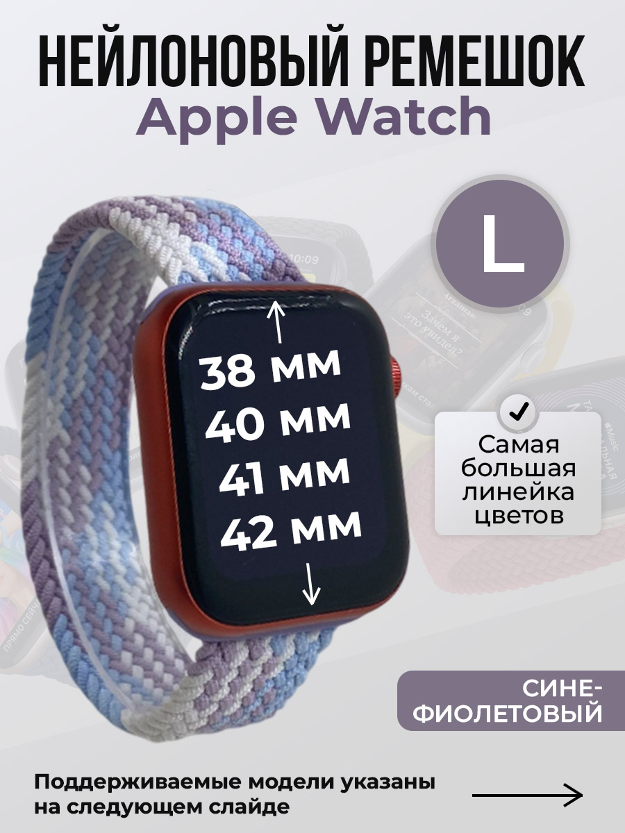 Нейлоновый ремешок для Apple Watch, без застежки, размер L подходит для смарт-часов Apple Watch series 1/2/3/4/5/6/7/8/9/SE/SE2/SE3 с размерами циферблата: 38/40/41 мм, а также для Apple Watch series 10/11, S10/S11 с размером циферблата 42 мм. Ремешок для часов iPhone выполнен из гипоаллергенного нейлона. Цвет крепления может отличатся от карточки товара.