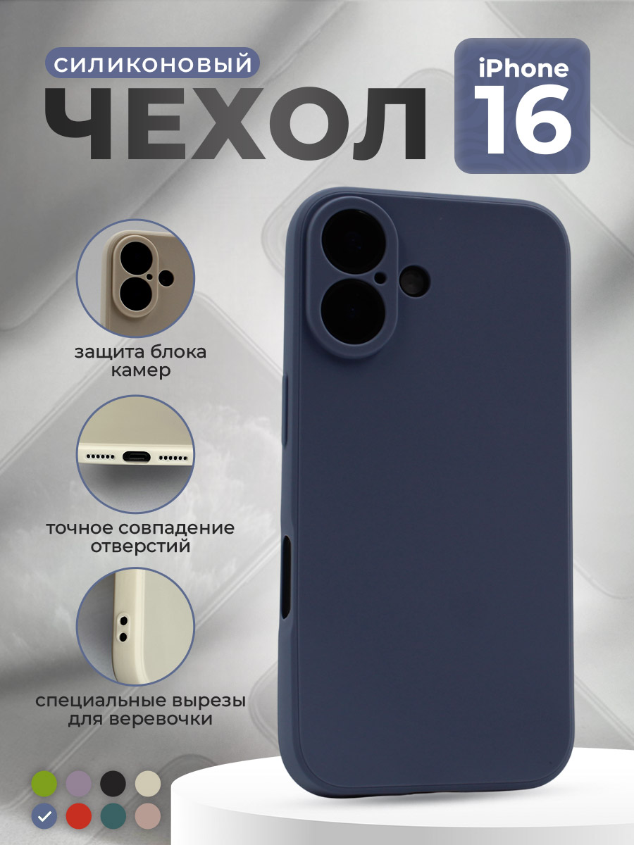 Силиконовый защитный чехол для iPhone 16, синий