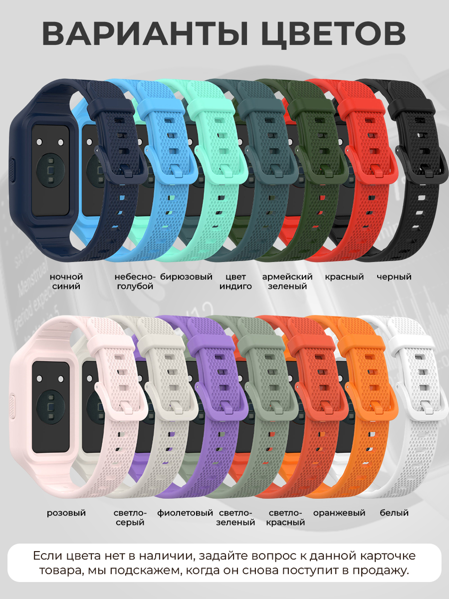 Универсальный силиконовый ремешок бампер для для Huawei Band 6, 7, 8, 9, 10 и Honor Band 6, 7 — это идеальный аксессуар для тех, кто ценит стиль и комфорт. Этот ремешок создан из гипоаллергенного силикона, что делает его безопасным для кожи, исключая риск аллергических реакций. Нобычный дизайн чехла с ремешком Хуавей Бенд 6 с рельефной текстурой создает акцент в вашем образе.