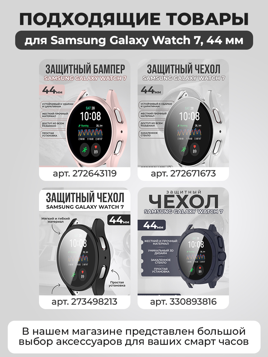 Не упустите возможность обеспечить смарт-часы гелакси вотч 7 надежной защитой и стильным внешним видом. Защитный чехол со стеклом для Самсунг Гелакси Вотч 7 44 мм — это гармония стиля и функциональности, доступная каждому владельцу этих умных часов.