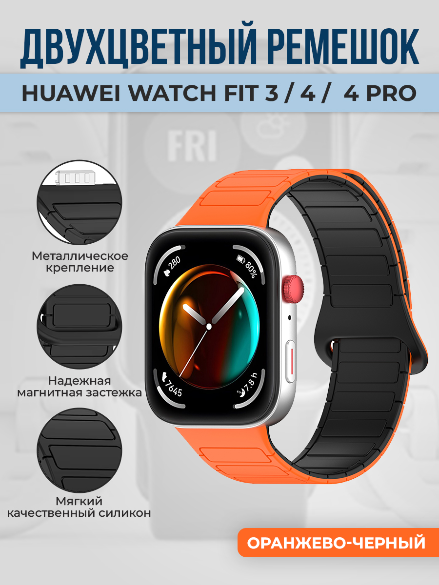 Двухцветный магнитный ремешок Huawei Watch Fit 3/4/4 Pro, оранжево-черный