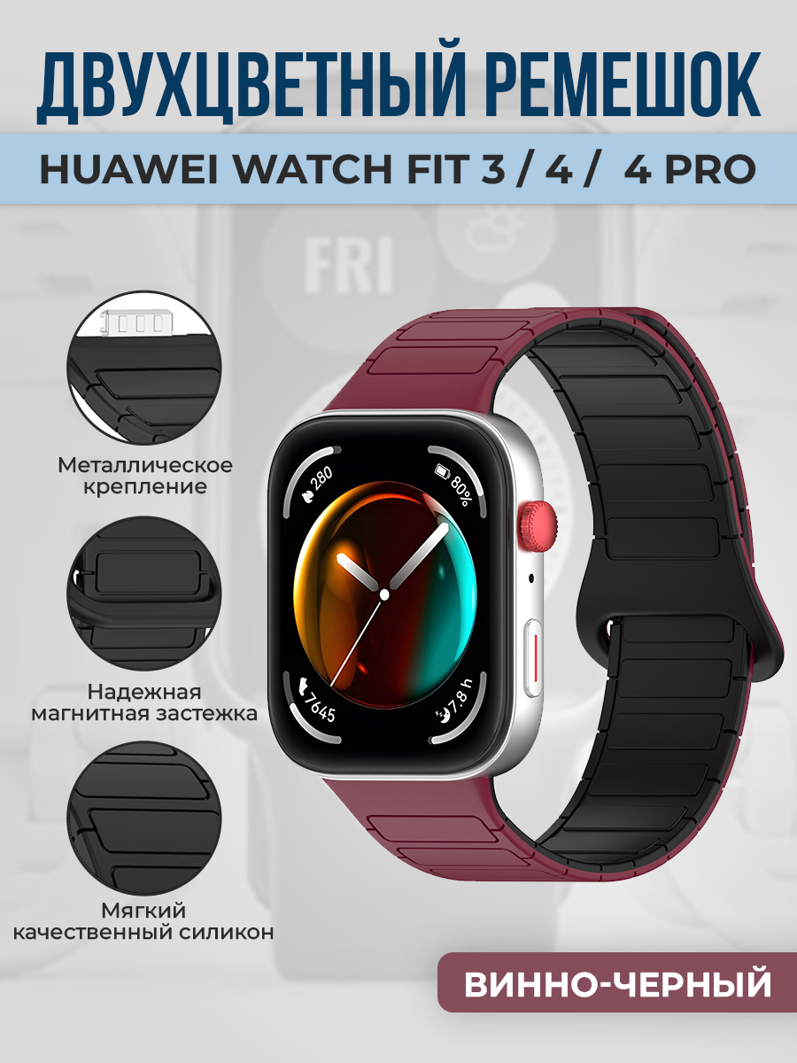 Двухцветный магнитный ремешок Huawei Watch Fit 3/4/4 Pro, винно-черный