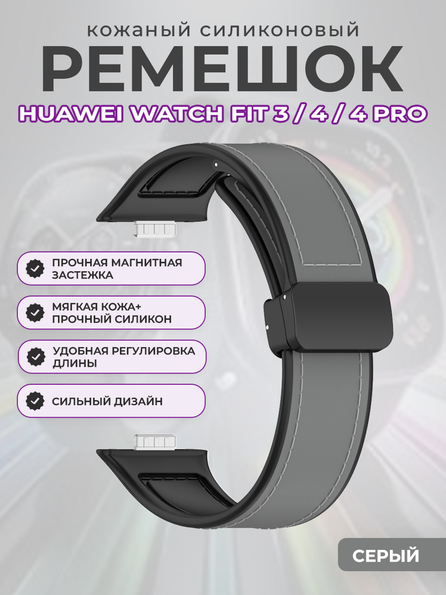 Кожаный силиконовый ремешок для Huawei Watch Fit 3/4/4 Pro, с магнитной застежкой, серый