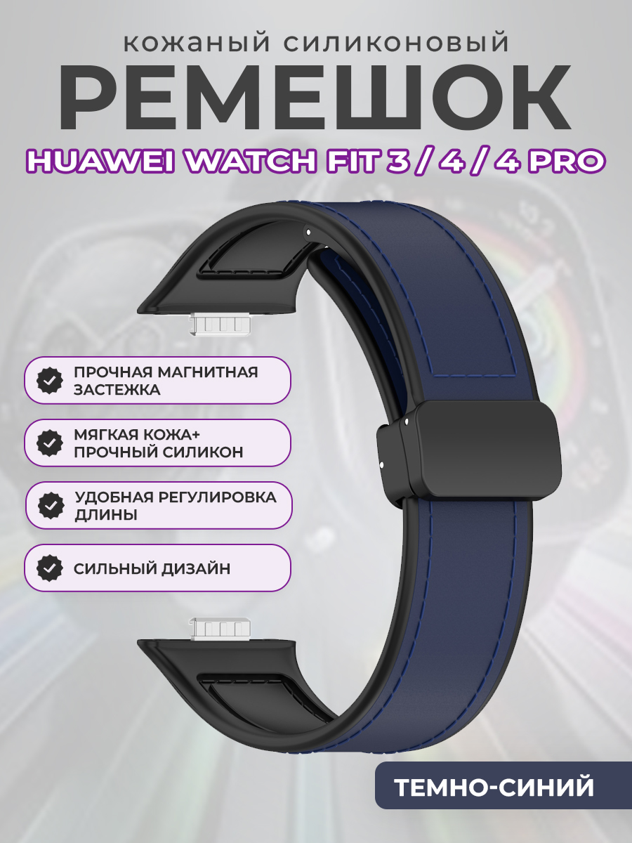 Кожаный силиконовый ремешок для Huawei Watch Fit 3/4/4 Pro, с магнитной застежкой, темно-синий