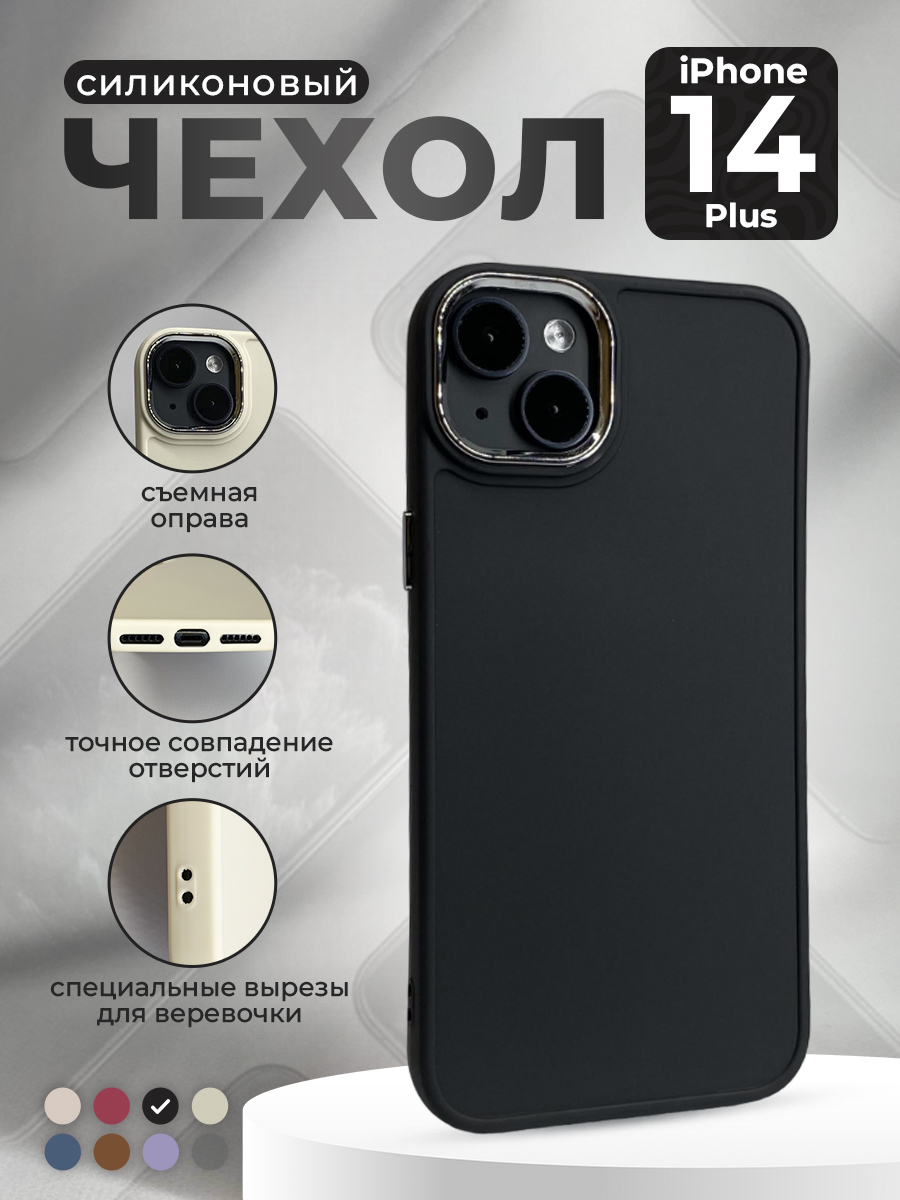 Силиконовый чехол со съемной оправой камеры для iPhone 14 Plus, черный