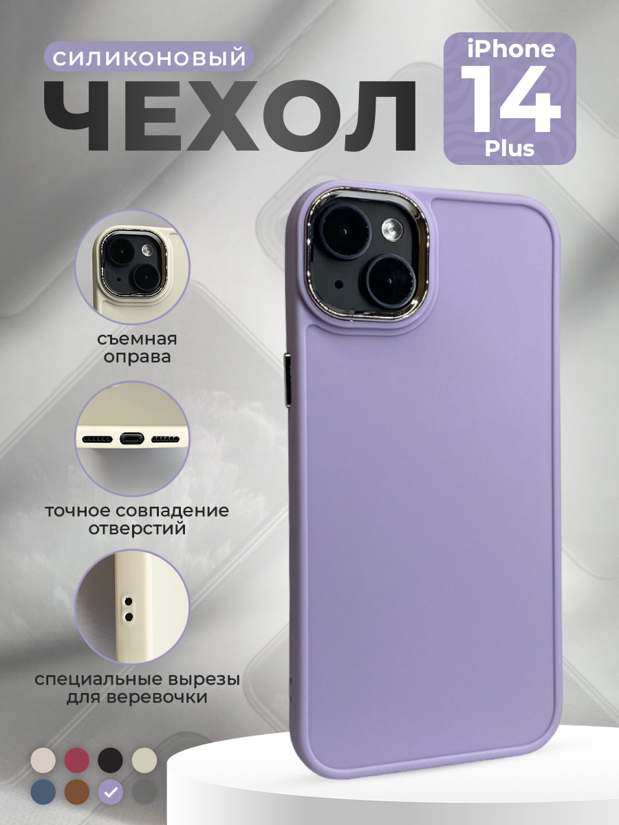 Силиконовый чехол со съемной оправой камеры для iPhone 14 Plus, фиолетовый