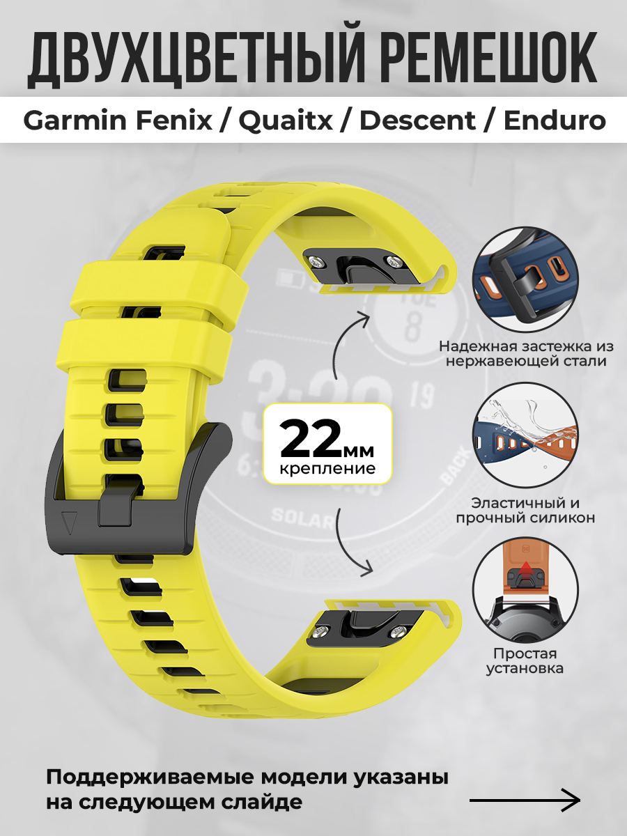 Двухцветный ремешок для Garmin Fenix / Epix / Instinct / Quatix, 22 мм, черно-желтый