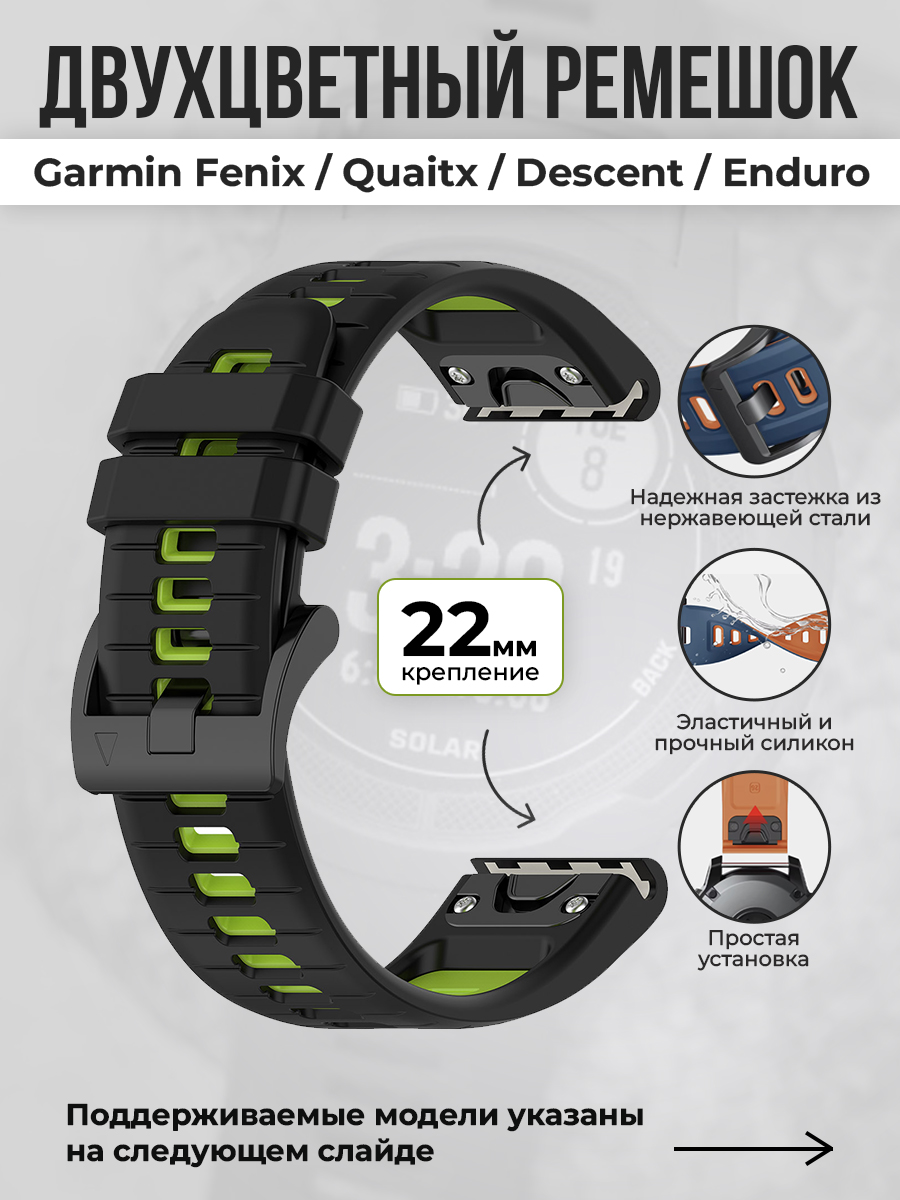Двухцветный ремешок для Garmin Fenix / Epix / Instinct / Quatix, 22 мм, черно-салатовый
