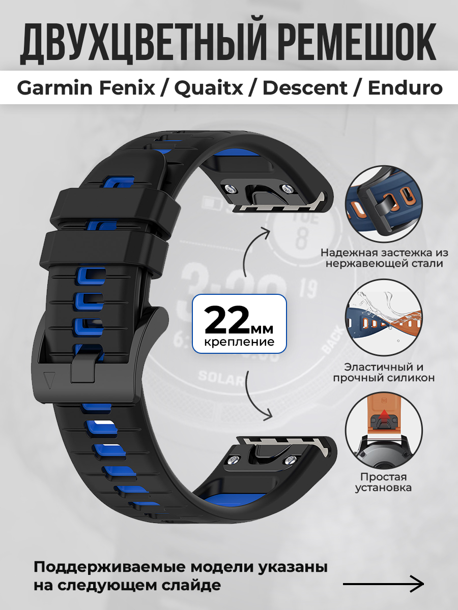 Двухцветный ремешок для Garmin Fenix / Epix / Instinct / Quatix, 22 мм, черно-синий