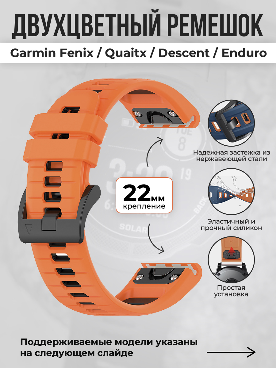Двухцветный ремешок для Garmin Fenix / Epix / Instinct / Quatix, 22 мм, черно-оранжевый