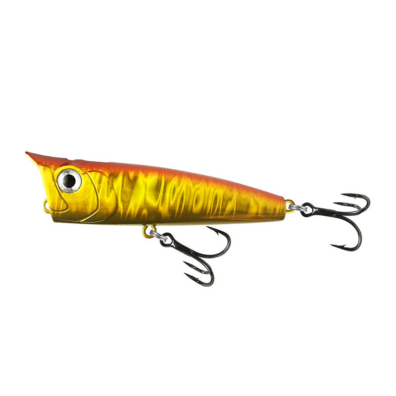 Воблер Jet Splashing Popper 7,5 см/8,6 г — это жёсткая поверхностная приманка, созданная для активной и зрелищной ловли хищной рыбы. Вид приманки — Popper / Hard Topwater Lure (жесткая поверхностная приманка-поппер). Модель отличается высокой удельной плотностью корпуса, что обеспечивает стабильный дальний заброс и точность подачи даже при ветре. Специальная чашеобразная выемка в носовой части формирует мощный всплеск и характерный «булькающий» звук при рывковой проводке, создавая эффект активно кормящейся рыбки. Детализированная текстура «рыбья чешуя» и реалистичные 3D-глаза усиливают визуальную привлекательность приманки и повышают количество атак. Встроенная система балансировки способствует устойчивому положению на поверхности и правильной игре при твичинге. Оснащение включает прочный тройной крючок №8 из черного никеля серии 6066, устойчивый к коррозии и рассчитанный на вываживание активного хищника. Тип плавучести — Floating (F) / Плавающая, что позволяет приманке работать строго в поверхностном слое воды. Минимальная рабочая глубина составляет 0 м — поппер действует непосредственно по поверхности, максимальная — до 0,3–0,5 м при агрессивной анимации и кратковременном подныривании во время рывков. Jet Splashing Popper эффективен для ловли окуня, жереха, щуки и морского лаврака как в пресной, так и в солёной воде. Приманка отлично подходит для рыбалки на мелководье, в прибрежной зоне, в местах скопления малька и в условиях активного поверхностного жора, обеспечивая мощные всплески, провокационные атаки и высокую результативность.