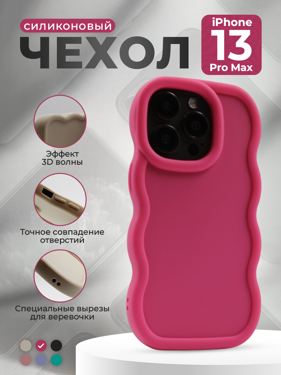 Мягкий чехол с большой волной для iPhone 13 Pro Max, ярко-розовый
