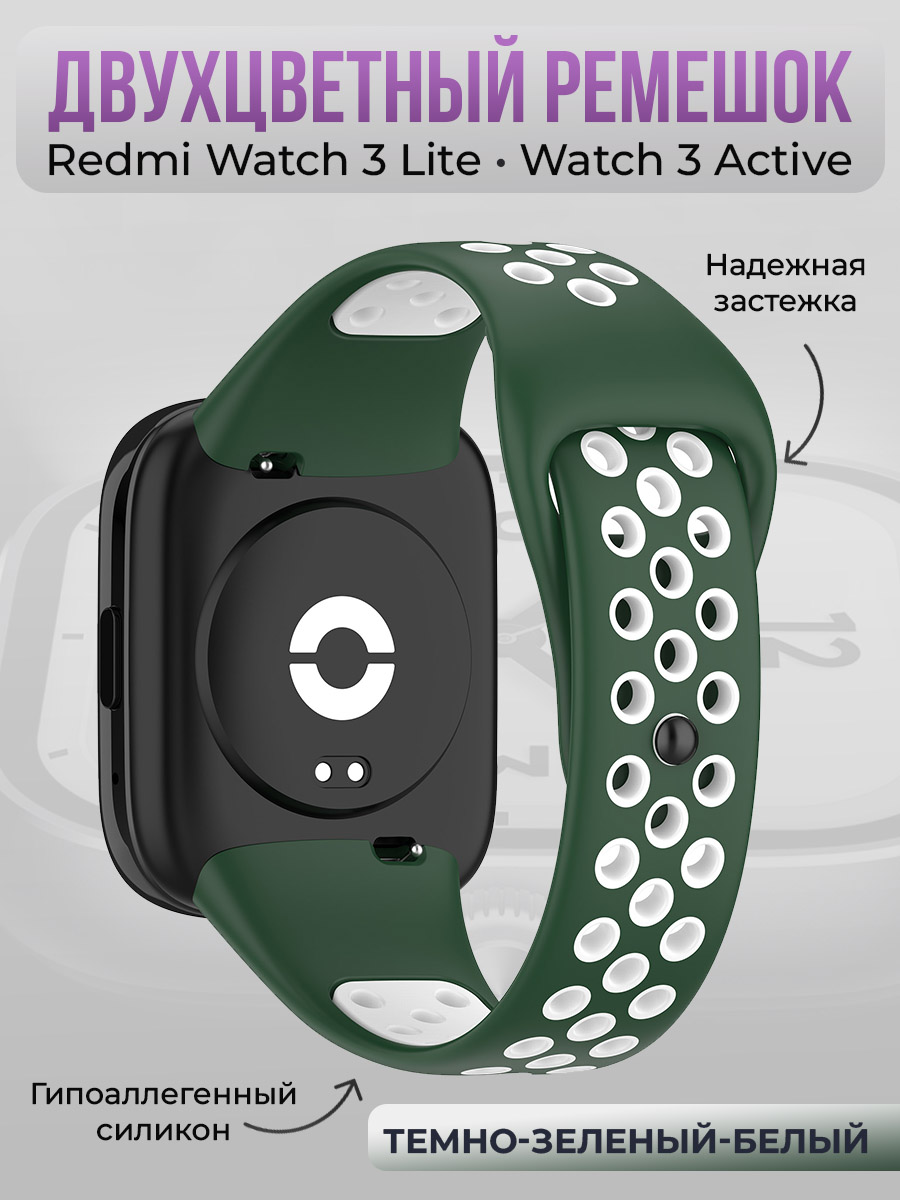 Двухцветный силиконовый ремешок для Redmi Watch 3 Lite, Watch 3 Active, темно-зеленый-белый