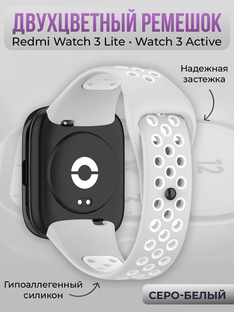 Двухцветный силиконовый ремешок для Redmi Watch 3 Lite, Watch 3 Active, серо-белый