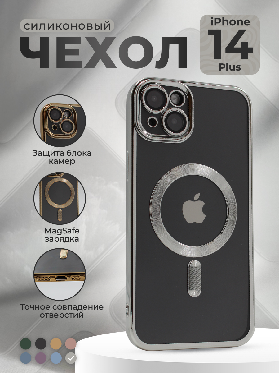 Прозрачный чехол с глянцевой рамкой для iPhone 14 Plus, MagSafe, серебристый