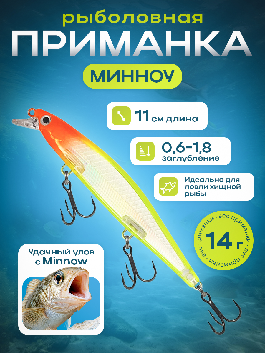 Воблер для рыбалки Minnow, 11 см/14 г, оранжево-желтая