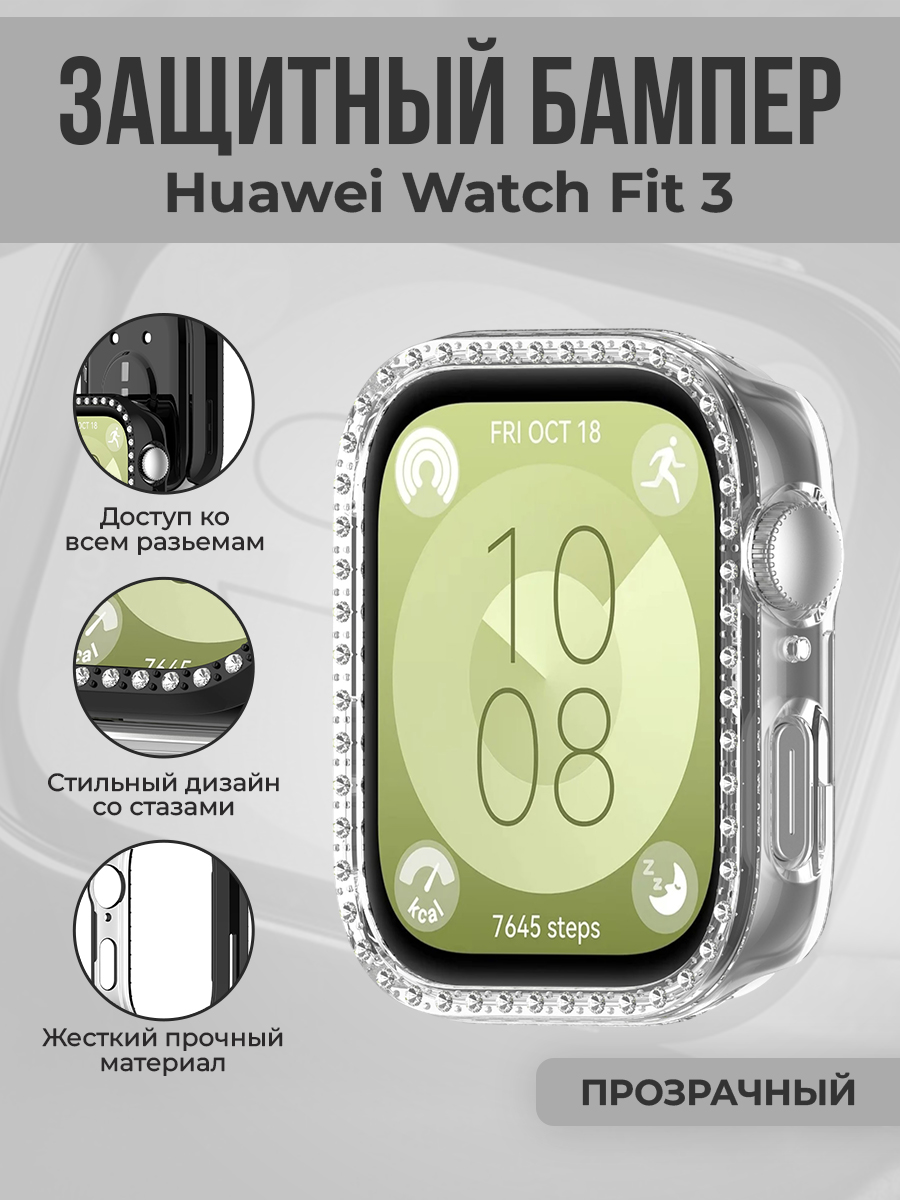 Жесткий защитный бампер для Huawei Watch Fit 3, со стразами, прозрачный