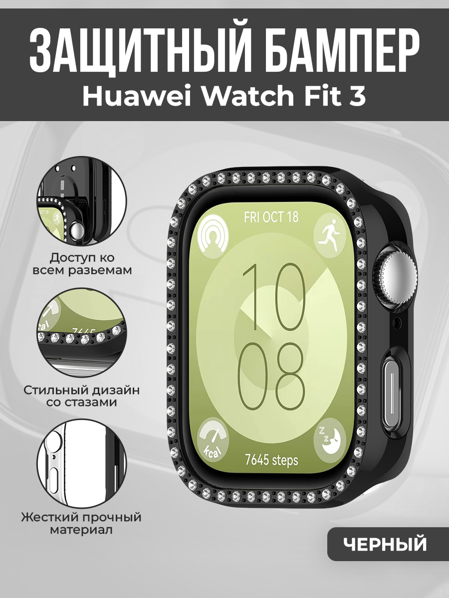 Жесткий защитный бампер для Huawei Watch Fit 3, со стразами, черный