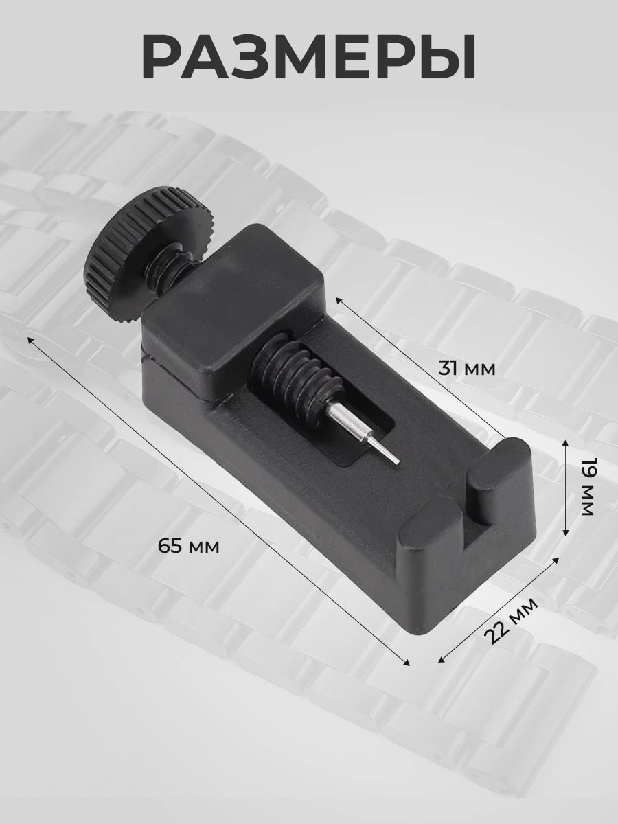 С его помощью вы сможете легко удалить или добавить звенья на металлических ремешках, а также регулировать длину кожаных и текстильных вариантов. Эргономичный дизайн и качественные материалы гарантируют удобство работы. Инструмент оснащен специальной насадкой для обеспечения точности и безопасности при использовании, что исключает риск повреждения самого ремешка.