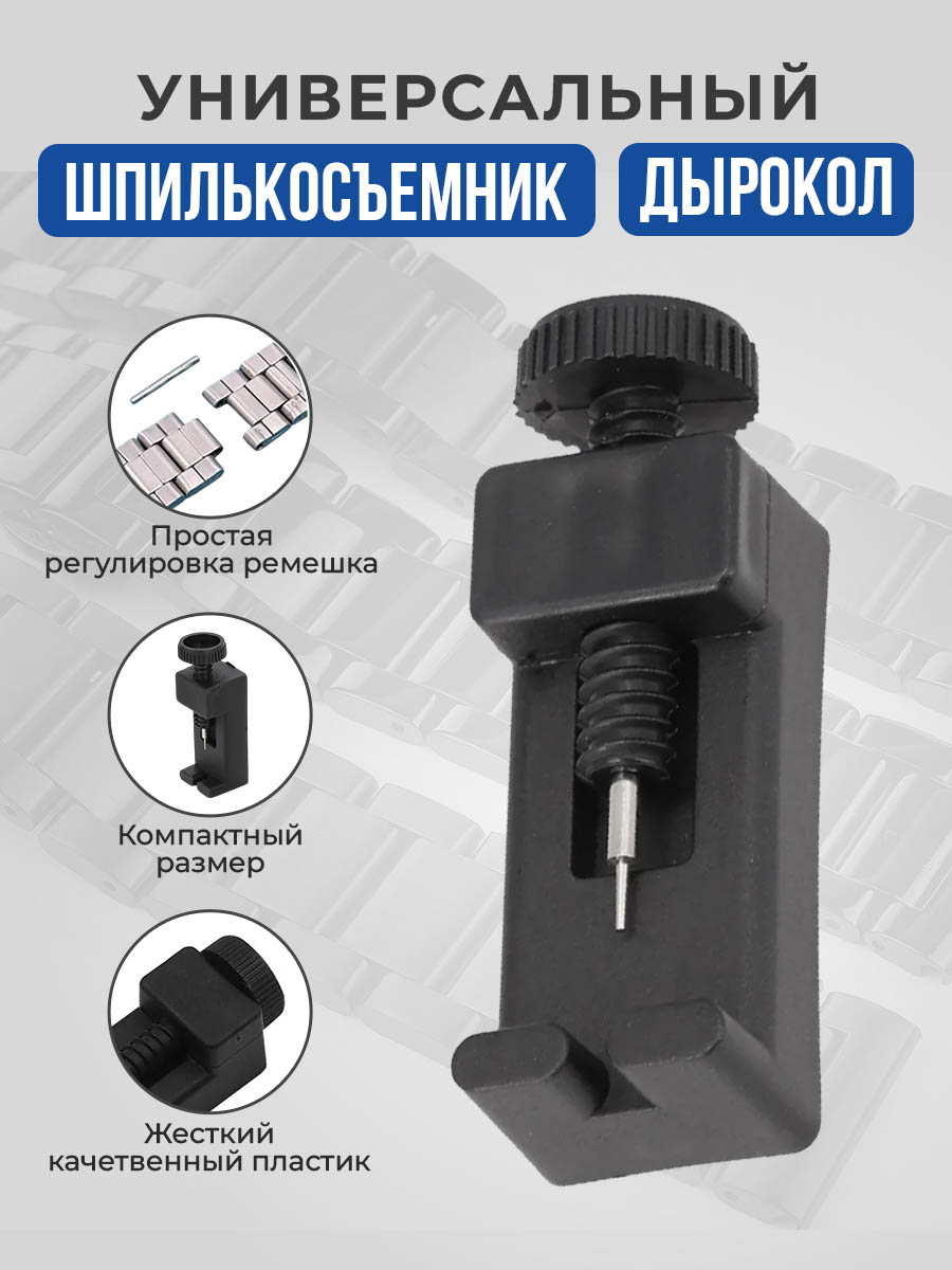 Этот универсальный шпилькосъемник и дырокол для ремешков часов также обладает рядом особенностей, которые делают его особенно привлекательным для пользователей. Он оснащен точной и надежной механикой, что гарантирует долгий срок службы и отличное качество работы в любых условиях. Легкость в маневрировании позволяет выполнять процедуру снятия шпилек с ремешков быстро и без риска повредить сами ремешки или корпус часов.