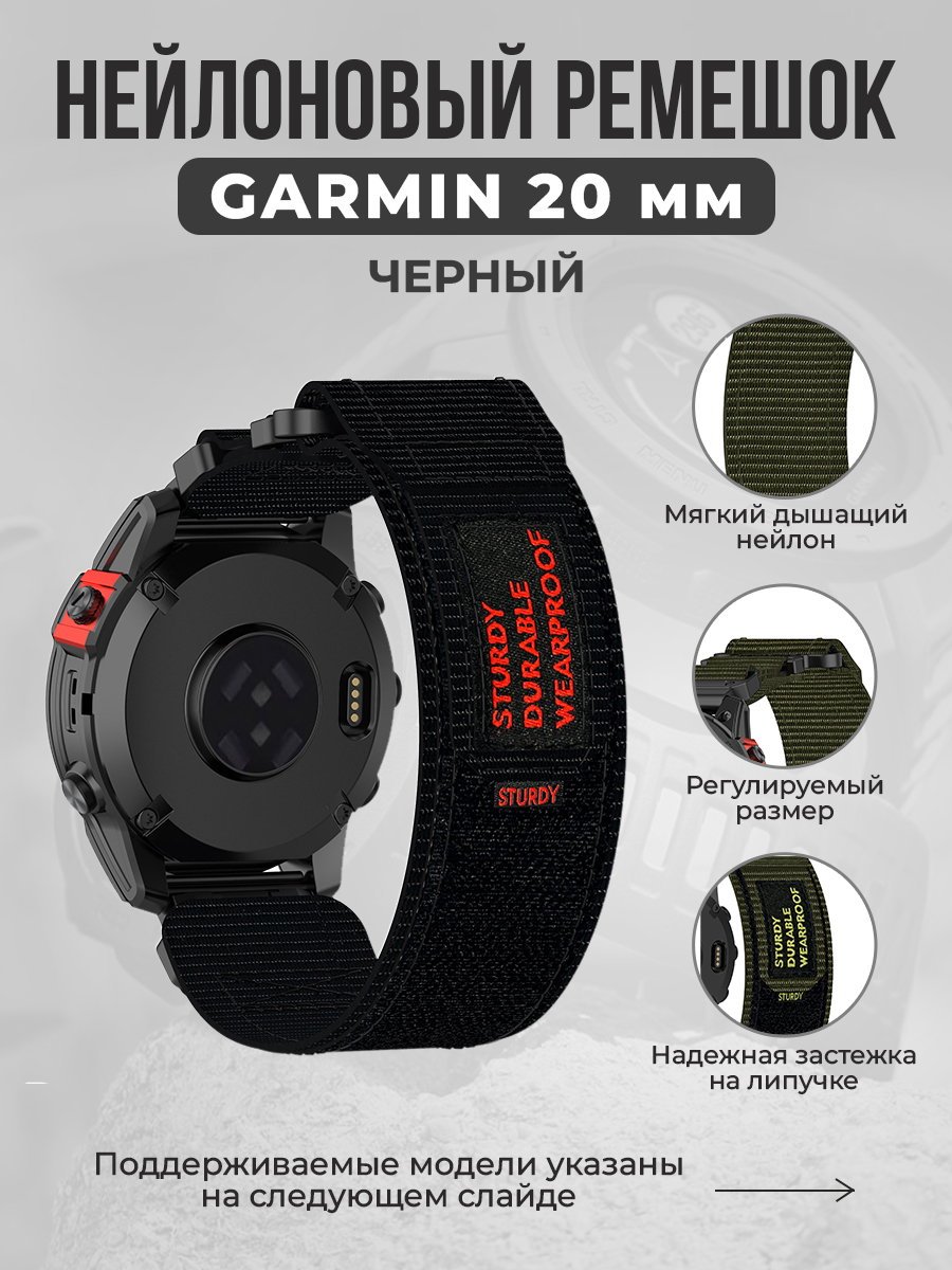Нейлоновый ремешок для Garmin 20 мм, черный