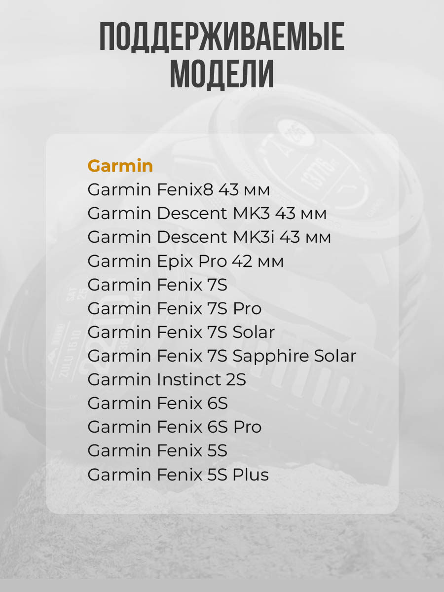 Нейлоновый материал обеспечивает отличную воздухопроницаемость и может выдерживать интенсивные нагрузки, что особенно важно для владельцев моделей Garmin Fenix8 43mm, Garmin Descent MK3 43mm, Garmin Descent MK3i 43mm, Garmin Epix Pro 42mm, Garmin Fenix 7S, Garmin Fenix 7S pro, Garmin Fenix 7S Solar, Garmin Fenix 7S Sapphire Solar, Garmin Instinct 2S, Garmin Fenix 6S, Garmin Fenix 6S Pro, Garmin Fenix 5S, Garmin Fenix 5S Plus которые активно занимаются спортом и исследуют природу. Ремешок на липучке с быстро сьемной застежкой Quickfit легко регулируется, что позволяет добиться идеальной посадки на запястье, а его универсальный стиль отлично впишется в любой гардероб, будь то тренировка на природе или повседневная носка.
