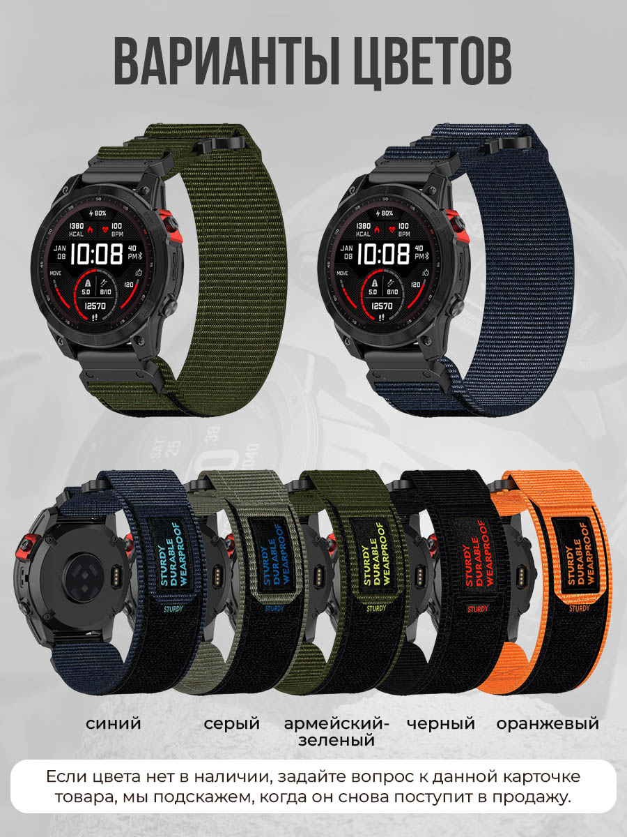 Представляем вашему вниманию нейлоновый ремешок для часов Garmin шириной 20 мм, идеально подходящий для активных приключений и спортивных мероприятий. Этот ремешок станет отличным дополнением к вашим часам Garmin Enduro, доступным, благодаря своей прочной конструкции и стильному дизайну, для людей, ценящих качество и комфорт.
