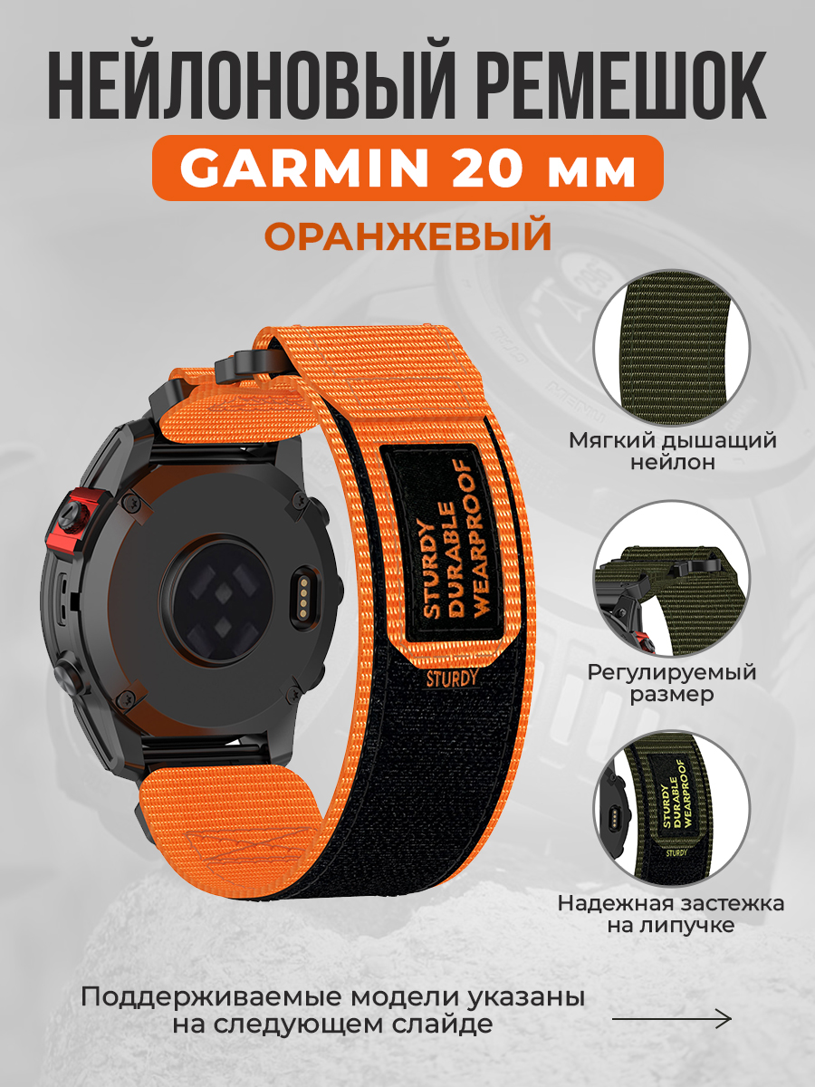 Нейлоновый ремешок для Garmin 20 мм , оранжевый