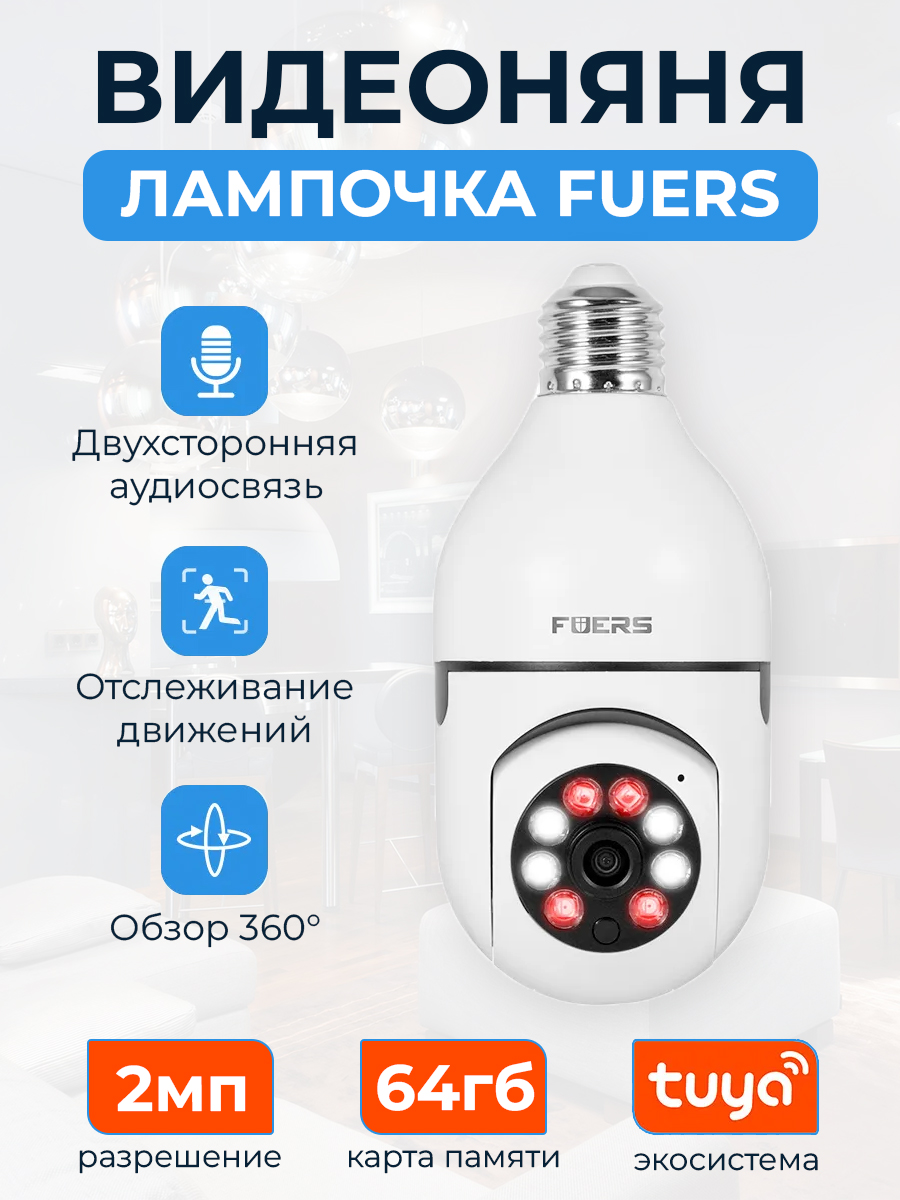 Камера видеонаблюдения Fuers IP, для цоколя E27, 360 градусов, 2МП, 64Гб