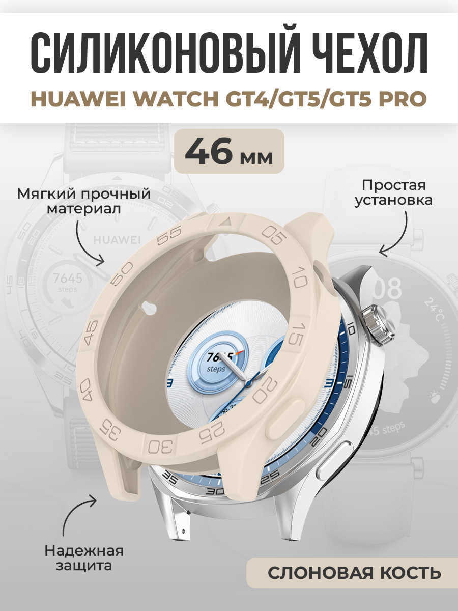 Силиконовый чехол для Huawei Watch GT4/GT5/GT5 Pro, 46 мм, слоновая кость