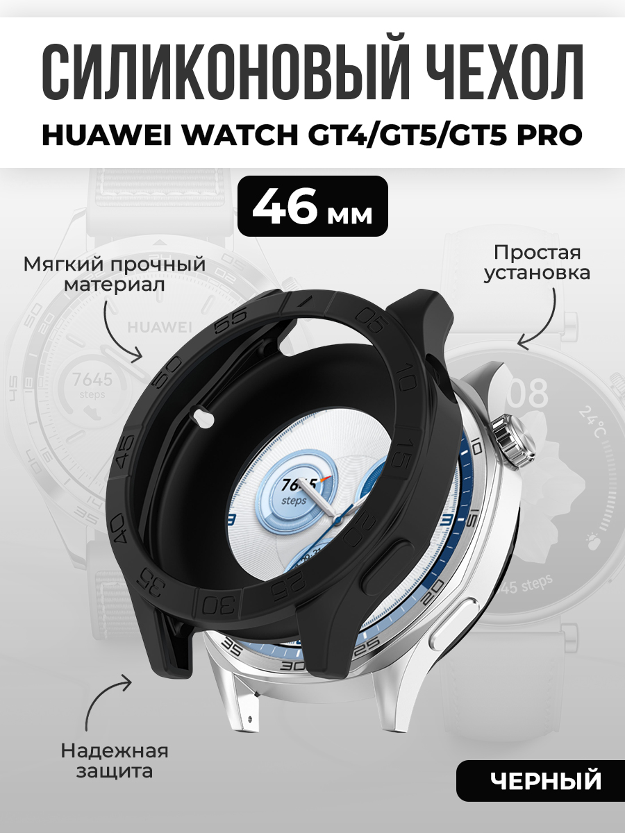 Силиконовый чехол для Huawei Watch GT4/GT5/GT5 Pro, 46 мм, черный