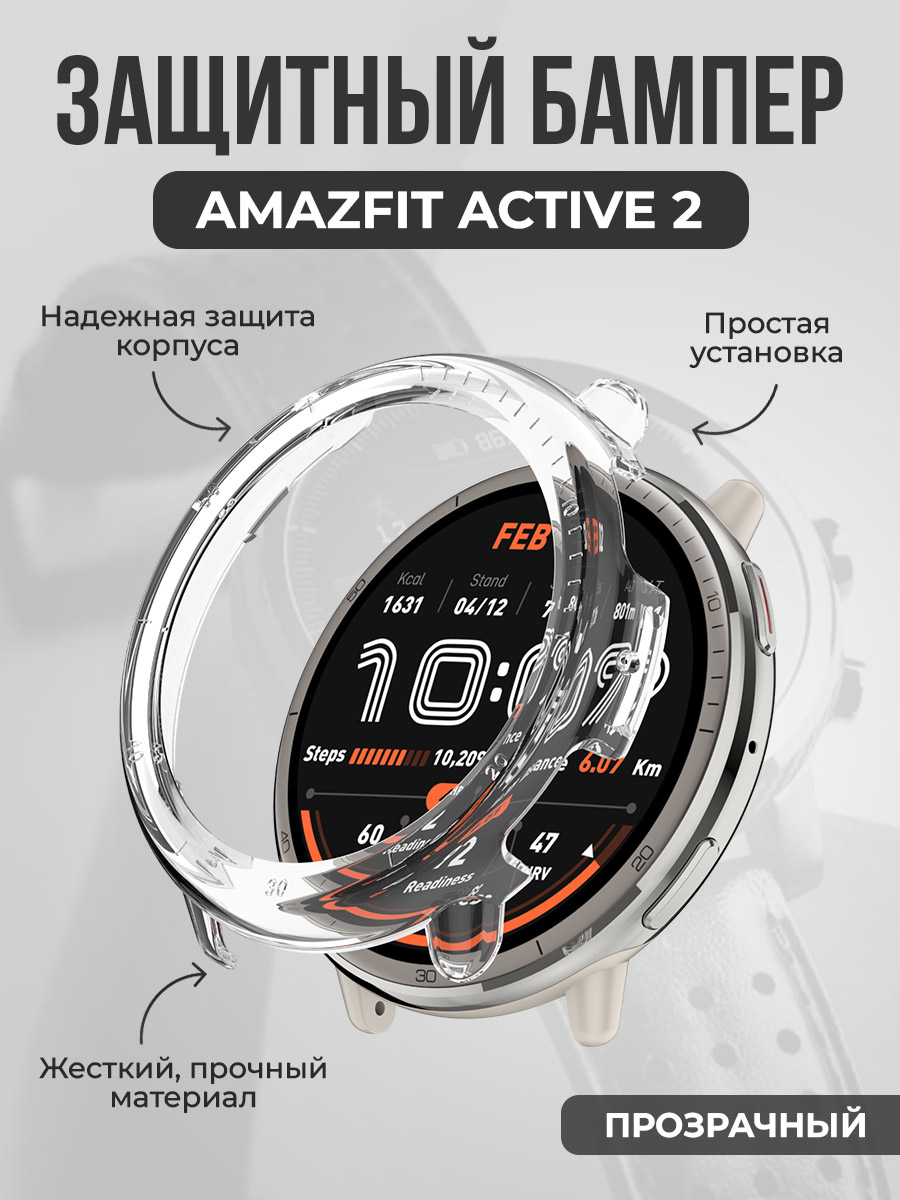 Жесткий защитный бампер для Amazfit Active 2, прозрачный