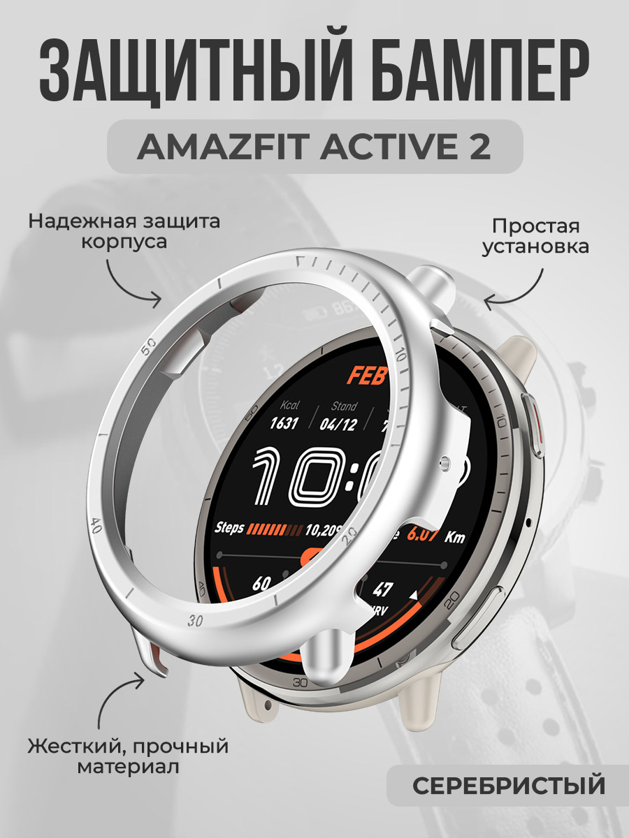 Жесткий защитный бампер для Amazfit Active 2, серебристый
